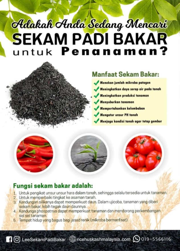 Lee Sekam Padi Bakar is a leading producers of rice husk ash in Malaysia that will work to meet whatever our customers requirements and produce a quality product at the most competitive price.